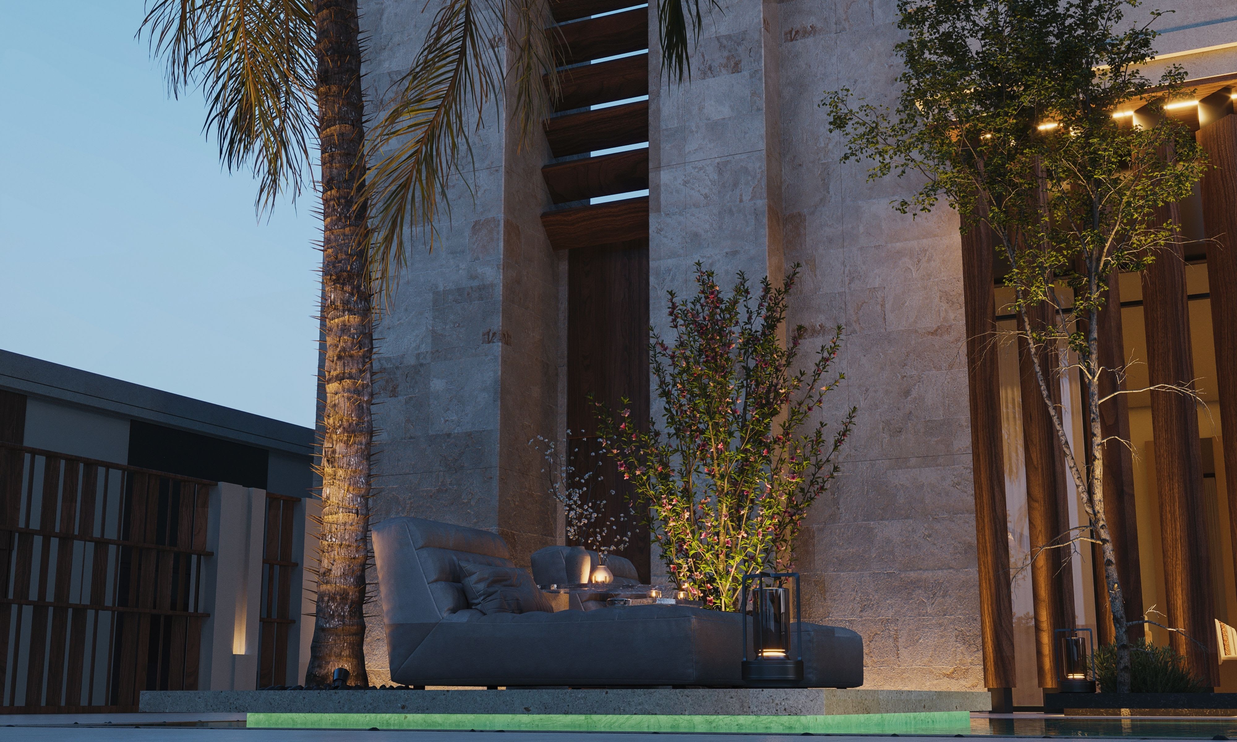 The landscape design for Desert Oasis Villa was conceived as integral to the architecture from the project's inception, not as decoration applied afterward. Working with landscape architects, we created outdoor spaces that extend the villa's living areas while responding to the challenges of the desert climate. The central courtyard garden is the project's signature feature—a lush oasis that contrasts dramatically with the arid landscape beyond. Here, we created layers of planting that provide shade, texture, and year-round interest despite challenging growing conditions. Mature palm trees establish scale and provide high canopy, while lower layers include flowering shrubs, ornamental grasses, and groundcovers selected for drought tolerance and low maintenance. A linear reflecting pool runs the length of the courtyard, its still surface mirroring the sky and surrounding architecture while providing evaporative cooling. At night, underwater lighting transforms the pool into a glowing ribbon that illuminates the garden from below. Beyond the courtyard, the pool terrace extends living space outdoors with generous lounge areas, an outdoor kitchen and dining pavilion, and a dramatic infinity-edge pool that seems to merge with the desert horizon. Here, the planting becomes more sparse and architectural, with sculptural succulents and native desert plants that celebrate the natural landscape rather than fighting it. We created a network of pathways that allow circulation around the property, connecting different outdoor areas and creating opportunities for exercise and contemplation. Strategic lighting makes these paths safe at night while creating dramatic nighttime landscapes. A separate wellness garden includes an outdoor yoga platform and meditation space, surrounded by fragrant plants and the sound of trickling water. Throughout the landscape, we balanced the desire for lush, comfortable outdoor living with environmental responsibility—using drought-tolerant species, implementing efficient irrigation systems, and designing hardscapes that minimize heat island effect. The result is a true desert oasis: a private paradise that provides respite from the harsh climate while celebrating the unique beauty of the desert environment.